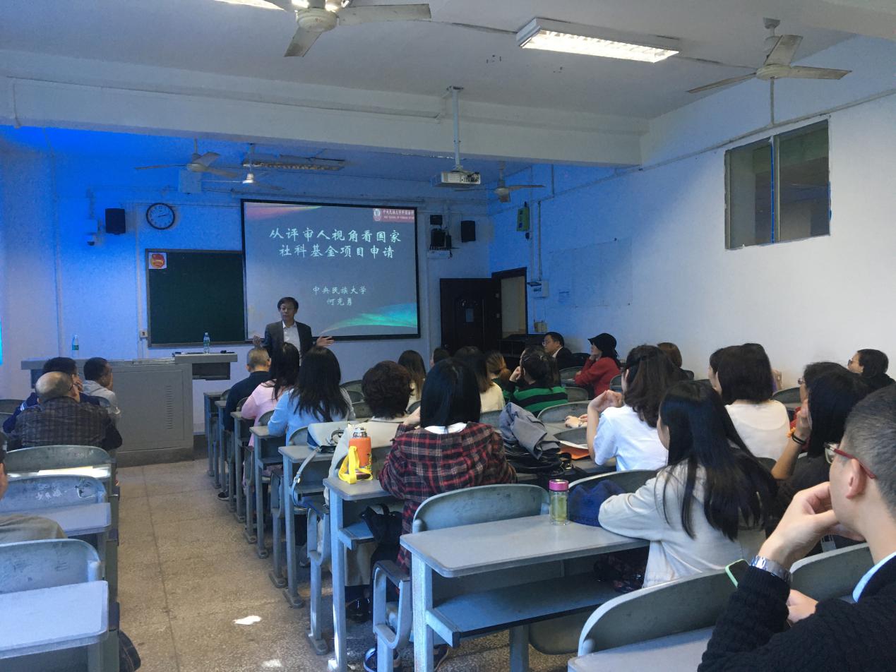 下午,何克勇教授以“从评审人视角看国家社科基金项目申请”为题,从国家社科基金项目评审人的角度,就国家社科基金项目的选题价值、研究内容、研究方法、研究团队构成、预期成果、评审人的关注重点、项目申请中的注意事项和申请书的撰写等方面,结合生动鲜活的案例进行了具体的阐释和深入的剖析。
