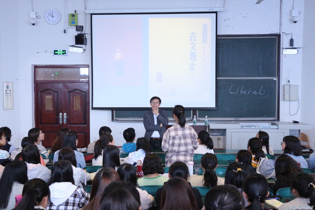 上午,何克勇教授在A座202教室为外国语学院200余名师生作了题为“当代大学教育的目的”的学术报告,报告由外国语学院院长杨南翎主持。何克勇教授从当代大学教育的目标入手,详细阐述了英语专业学生的学习要求及学习方法。讲座过后,他还与师生们进行了互动,解答了学生们关于英语学习的疑惑,师生们倍受鼓舞。