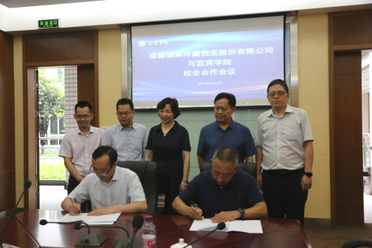 王如渊代表学校与成都银犁冷藏物流股份有限公司董事长兼总经理谢彬签署了校企合作框架协议。