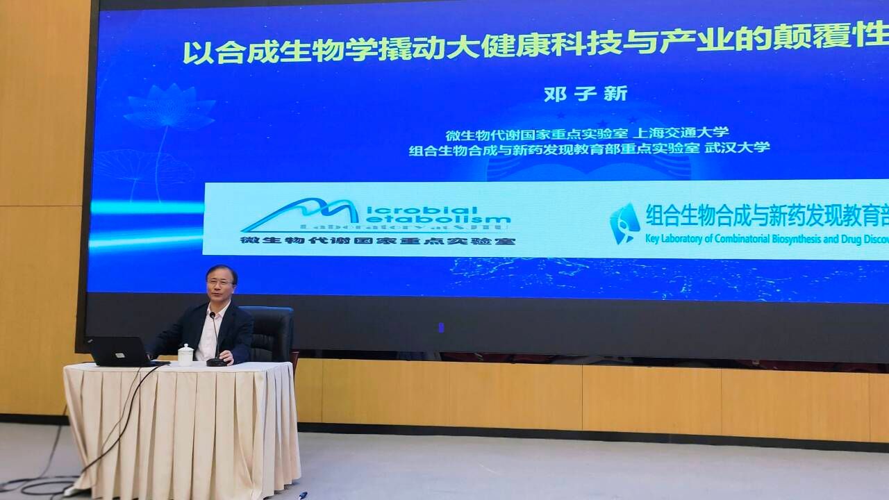 12月14日-15日,中国科学院院士、微生物代谢国家重点实验室主任邓子新教授应邀来校指导科研平台建设和学科建设工作,并作题为“以合成生物学撬动大健康科技与产业的颠覆性创新之路”的学术报告。