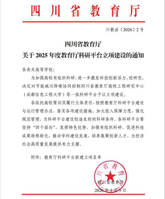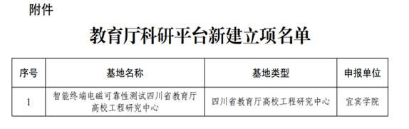 近日,四川省教育厅正式发布2025年度教育厅科研平台立项名单,由我校组织电子信息工程学院申报的“智能终端电磁可靠性测试四川省教育厅高校工程研究中心”成功获批立项。